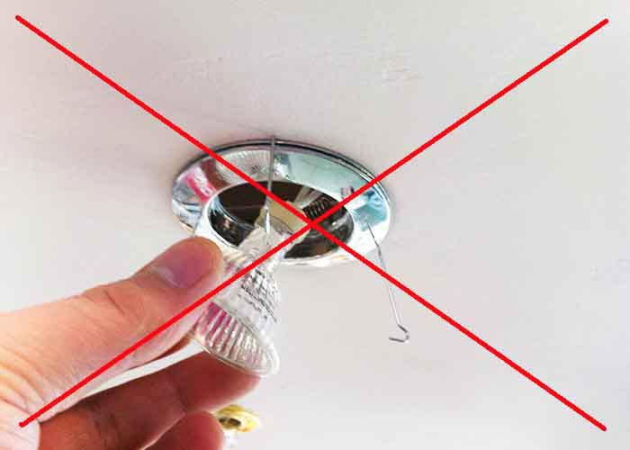 В современном хорошем ремонте не принято использовать огромное количество точечных светильников. Мало того, что они вышли из моды и смотрятся вульгарно, так ещё Вы получите большую техническую проблему. Представьте, что у Вас 10 потолочных точечных светильников одного типа. Нет ни чего вечного, и рано или поздно они начнут выходить из строя.
